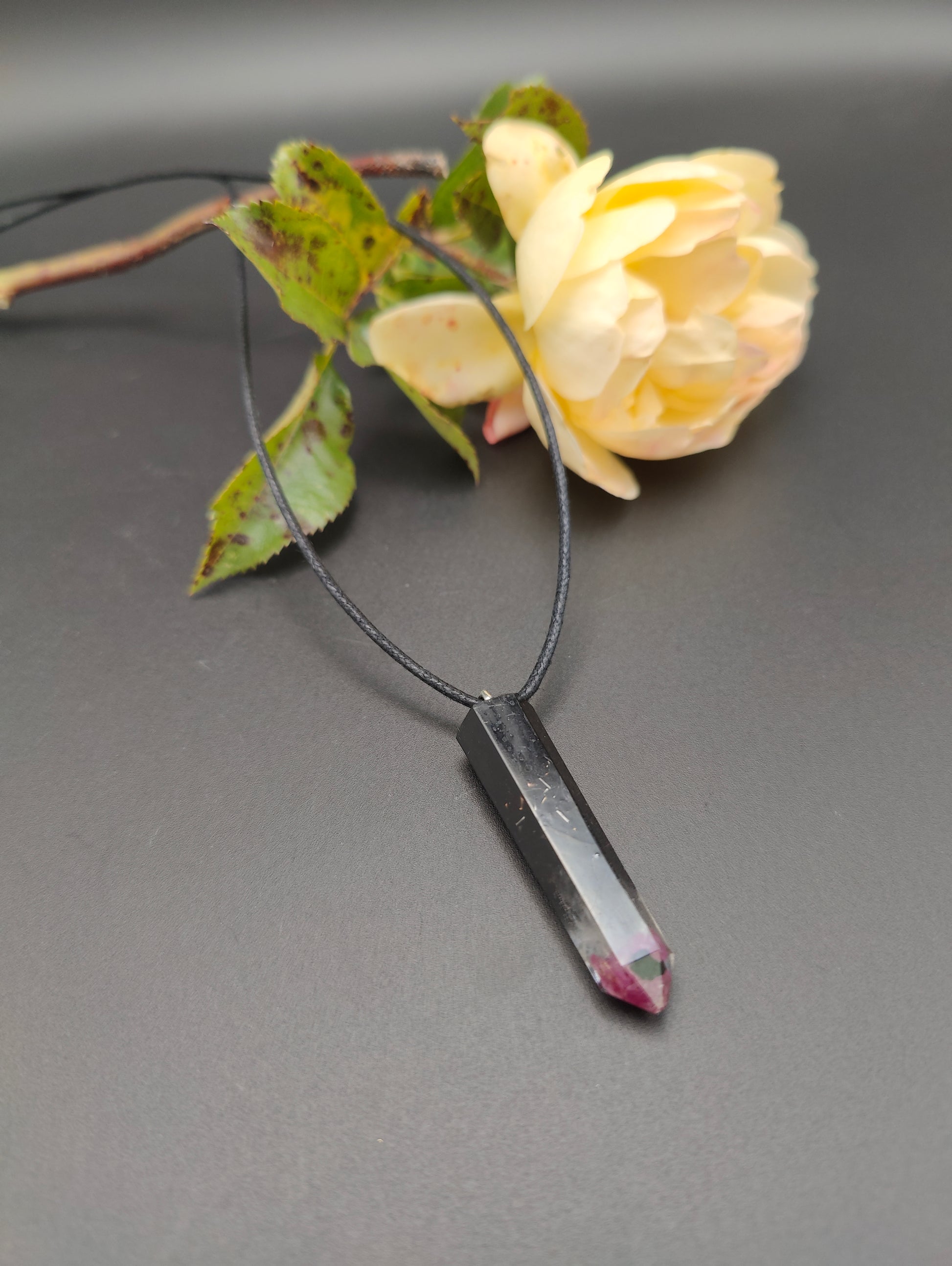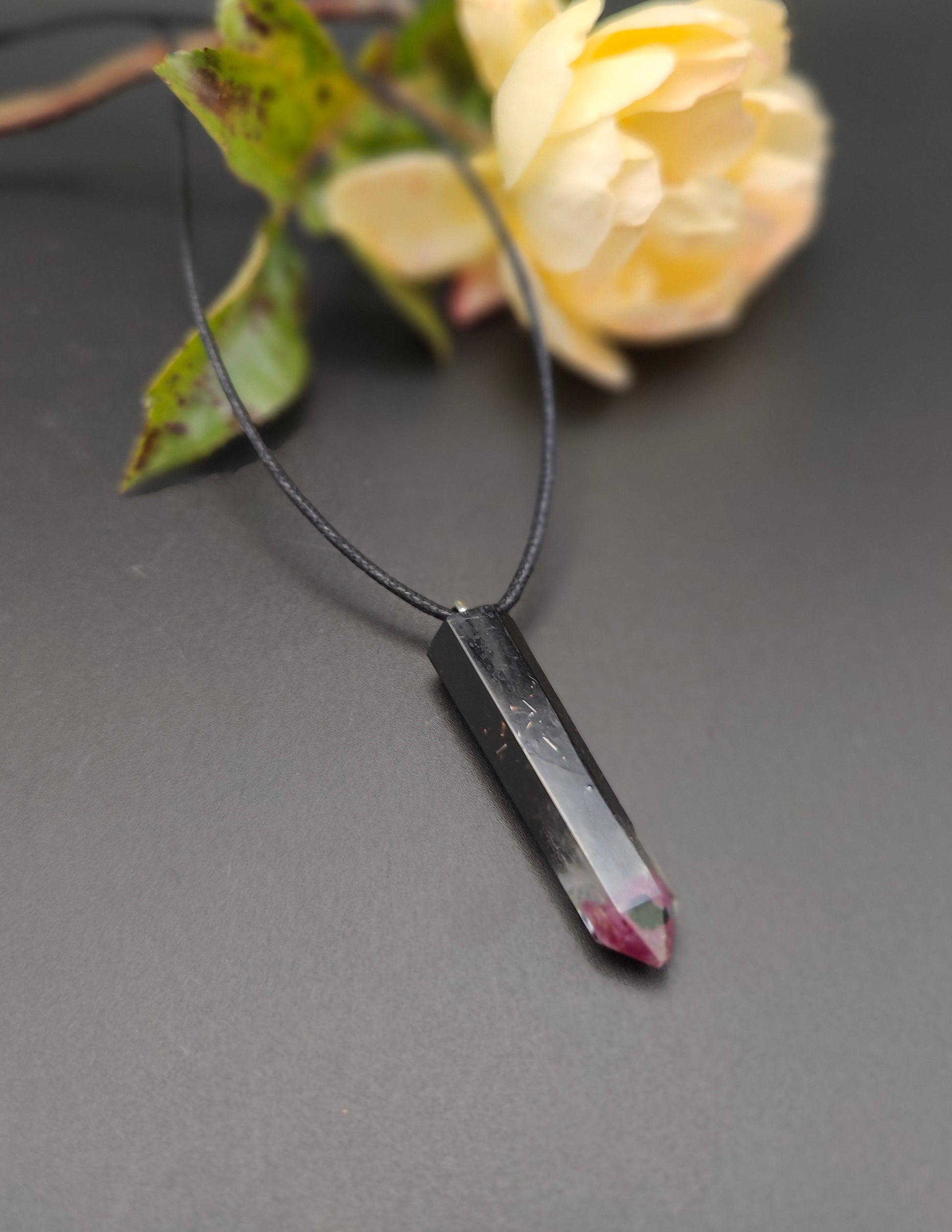 Anhänger - kristallspitzenförmig in schwarz mit Rubin und Turmalin