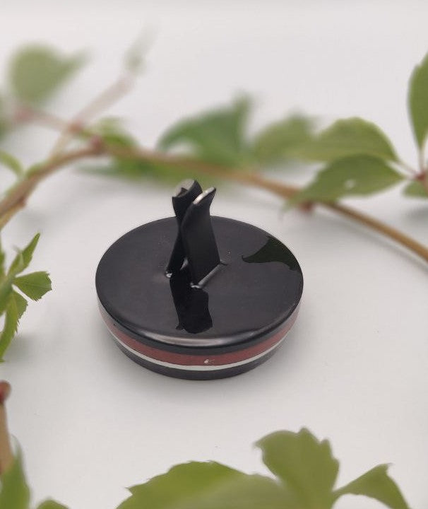 Eine Blume des Lebens als schimmerndes Symbol aus Metall ziert zusammen mit Bergkristall, Amethyst und Shungit die obere Schicht. In den Farbschichten befinden sich Eisenoxid, Eisengranulat, Bergkristallpulver, Shungitpulver, Agnihotraasche, Kupfer, Messing und Eisen.