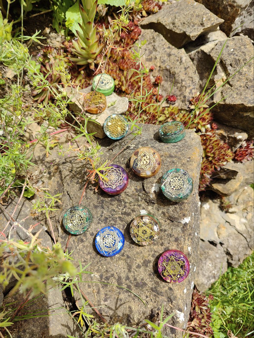 Du kaufst hier individuell abzusprechende Taschenorgonite mit einem Durchmesser von 4 cm, die ich nach deinen Vorgaben anfertige. Beim Kauf mehrerer Taschenorgonite gebe ich Mengenrabatt.