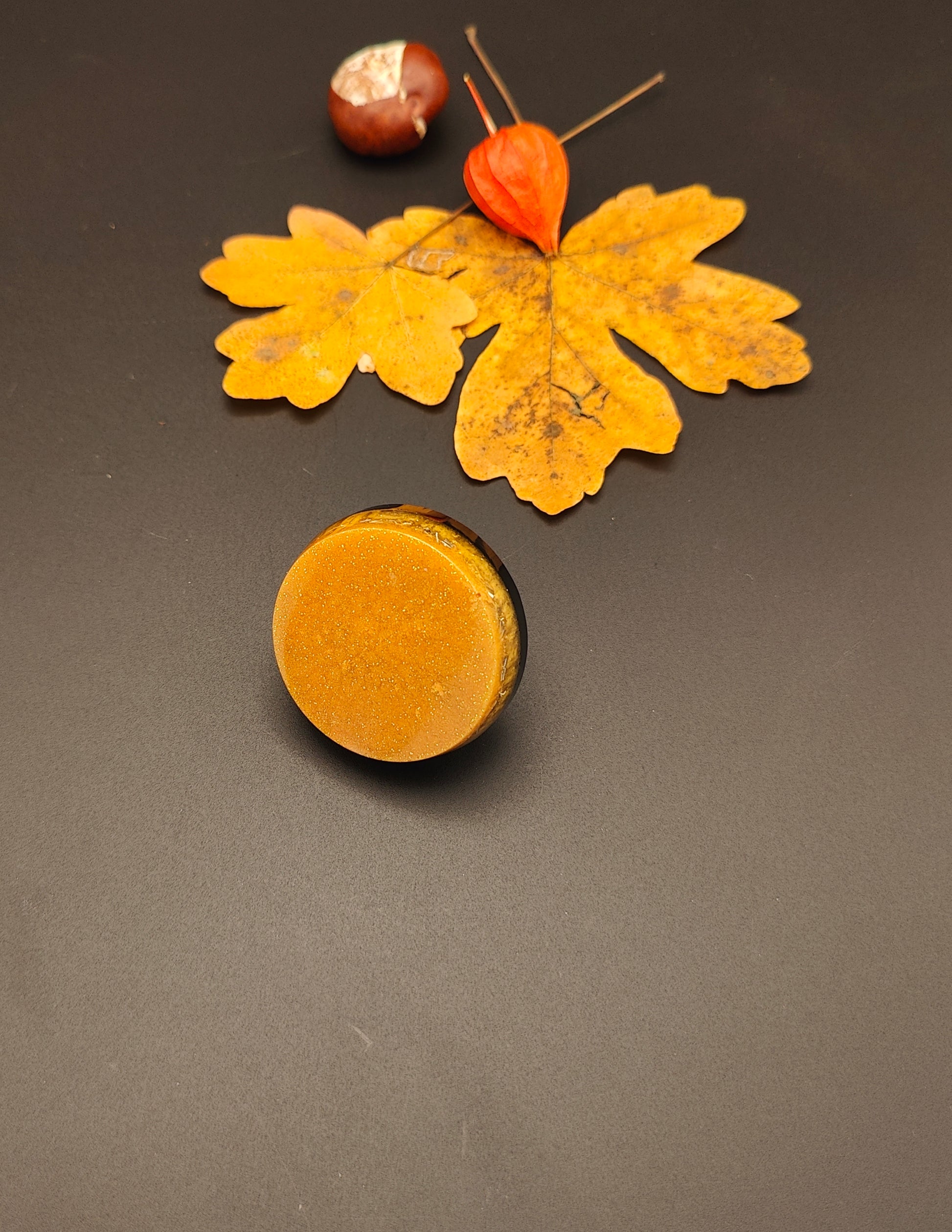 Die goldene Glitzerschicht enthält viel Bergkristallpulver, die schwarze Shungitpulver, zudem befindet sich in den Schichten Eisen, Messing und Kupfer, Eisengranulat und Agnihotraasche.