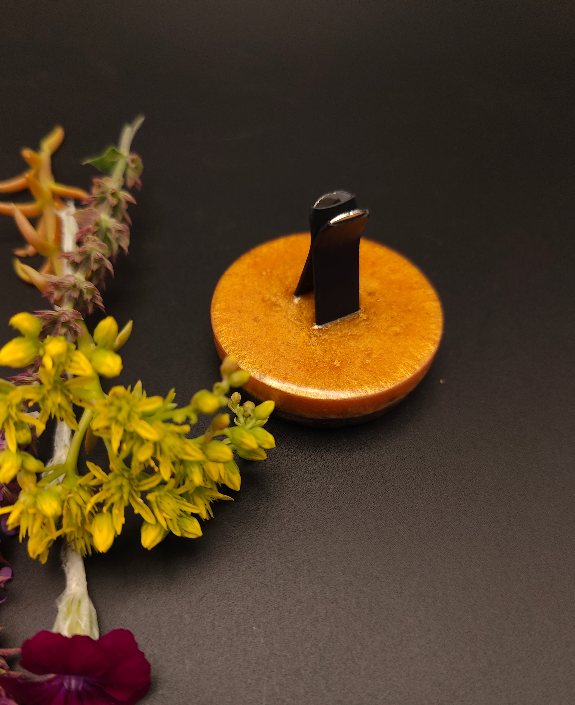 Dieser Orgonit hat ca. 5 cm Durchmesser und ist ca. einen cm hoch.