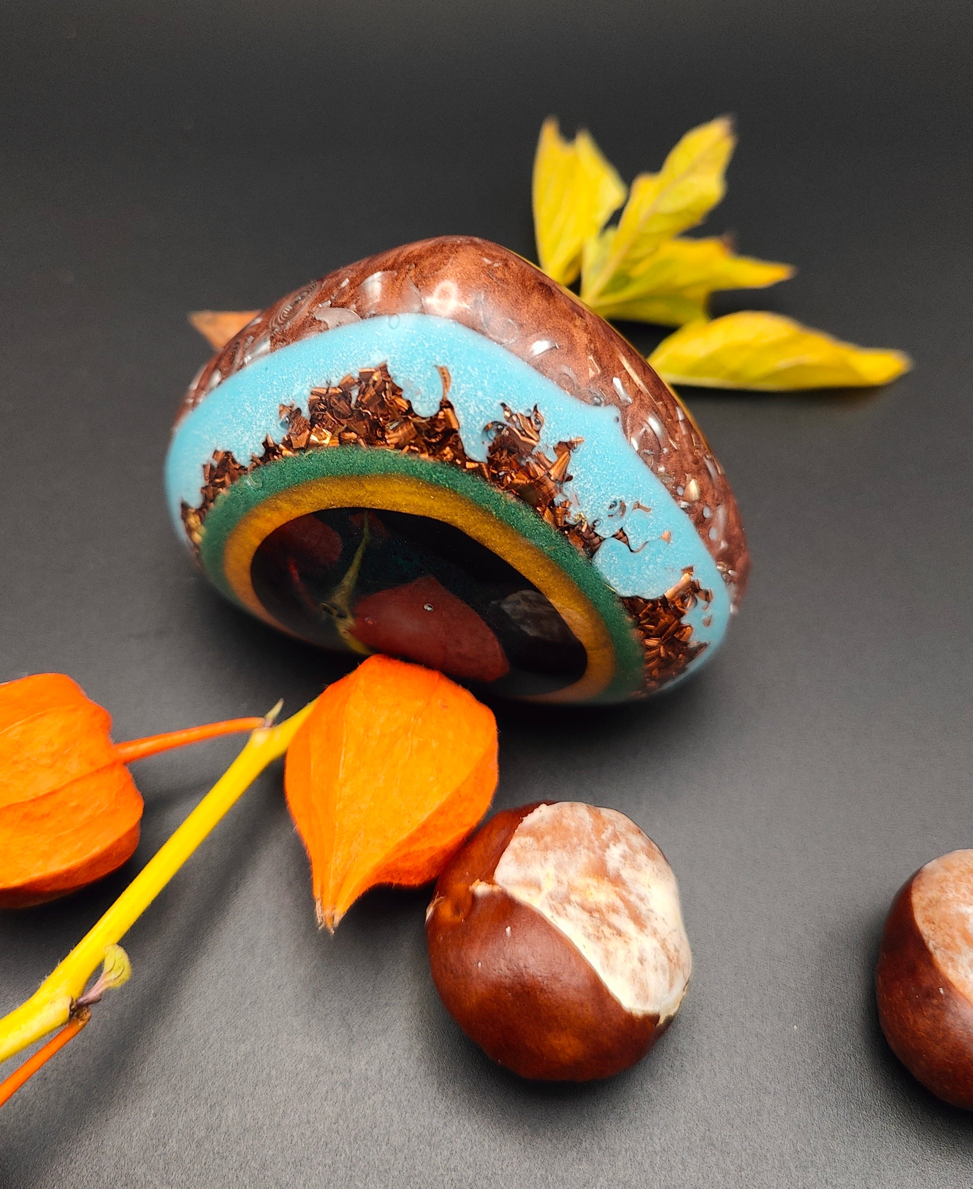 Die Farbschichten sind sehr individuell und harmonisch gegossen. Gefüllt sind sie mit Eisen, Messing, Kupfer und Agnihotraasche.