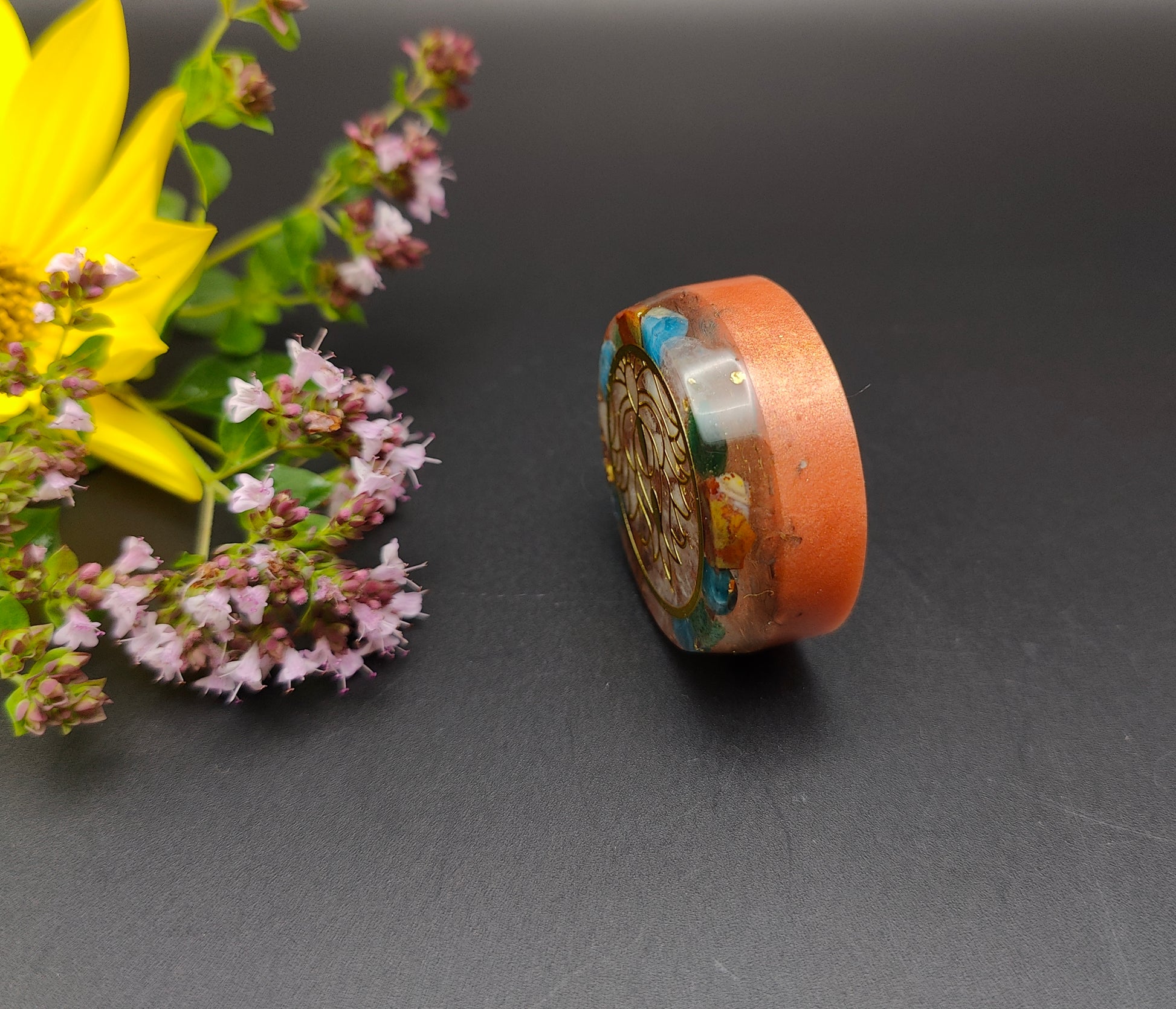 (Ich kann Taschenorgonite in beliebigen Farben, mit personalisierten Steinen, mit beliebigen Symbolen - oder auch ohne -, mit 4 oder 5 cm Durchmesser herstellen. Melde dich gerne beim Wunsch eines personalisierten Taschenorgonites.)
