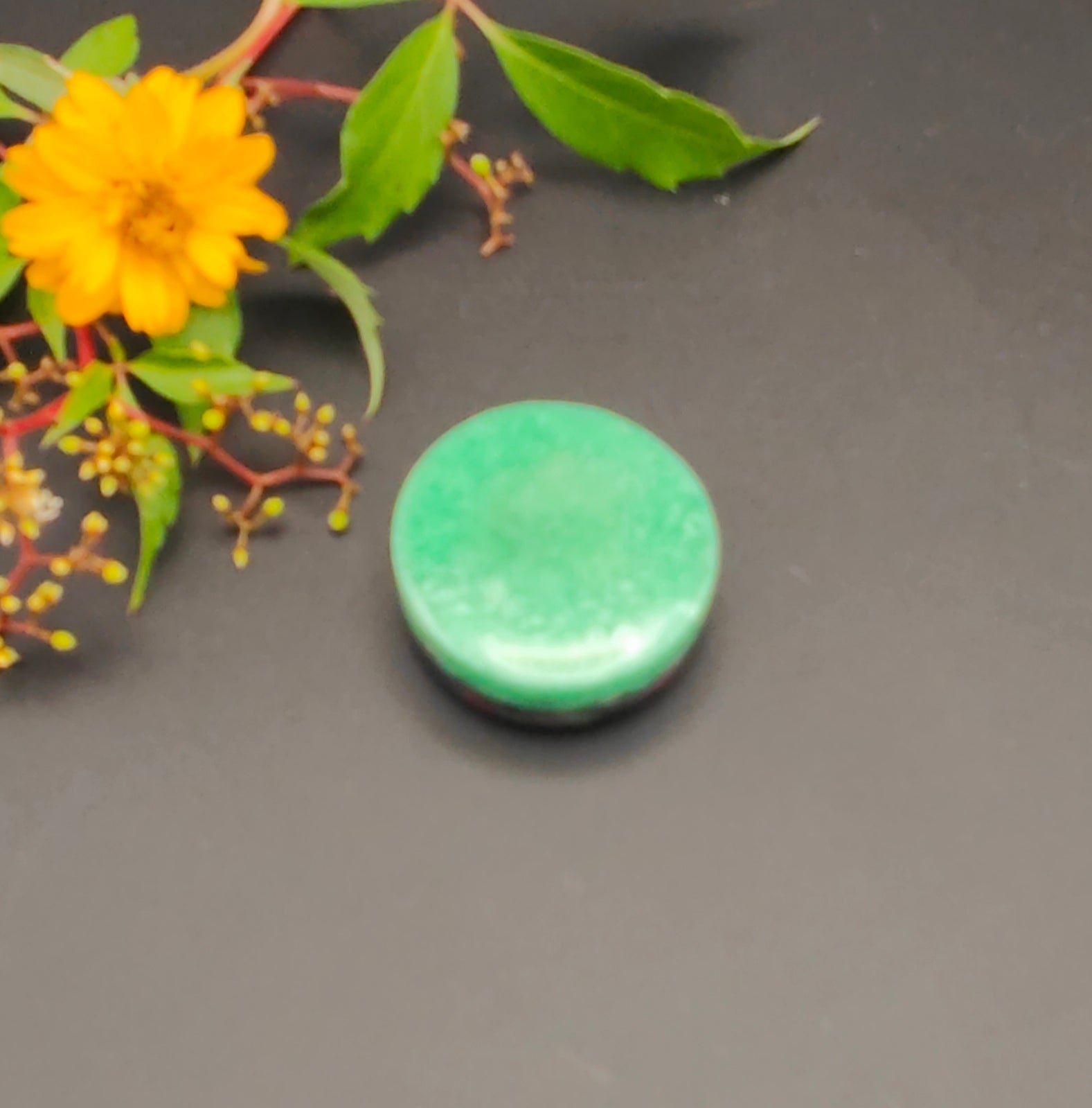 Er hat ca. 4 cm Durchmesser und ist ca 1,5 cm hoch.