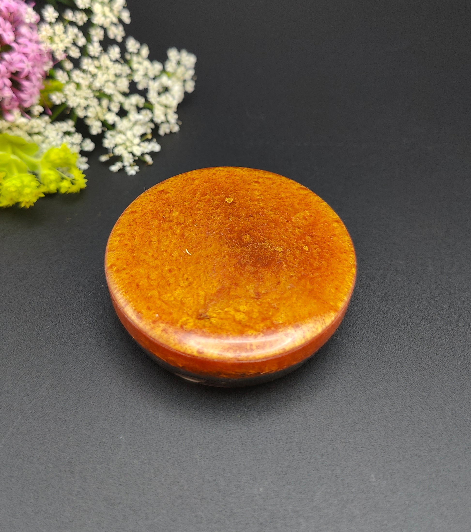 Dieser Orgonit hat ca. 5 cm Durchmesser und ist ca. 1,3 cm hoch.